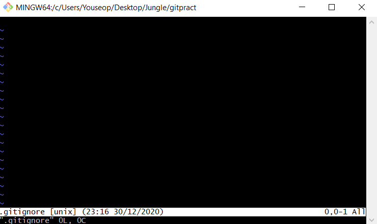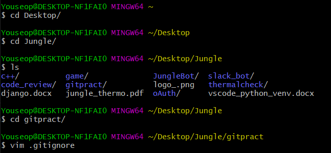 프로젝트 디렉터리로 이동한 후에, vim 편집기를 사용해 .gitignore파일을 생성한다.