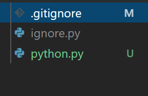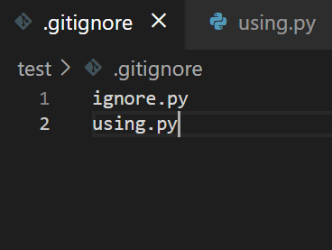 폴더 내에 ignore.py와 python.py를 만들어 주었다. ignore.py는 repository에 올라가지 않도록 .gitignore에서 ignore.py 를 추가해보자.