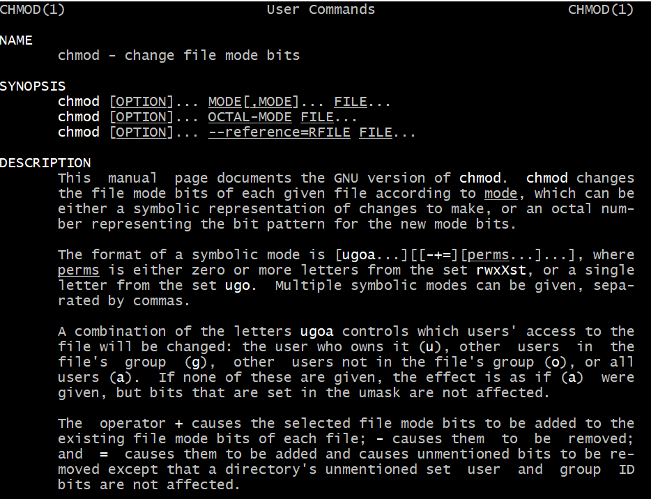 - chmod 프로그램을 살펴보세요. (man chmod를 사용해보세요.)