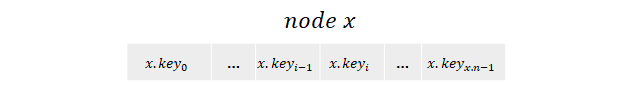 위의 그림에서 각 노드는 5개의 key를 가지기 때문에 x.n = 5이다.